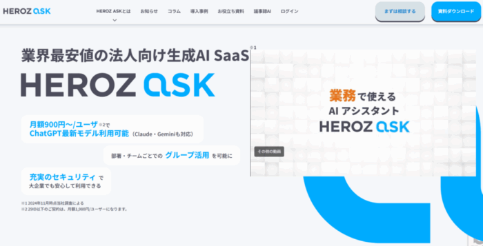 HEROZ ASK(国内向け生成AI/AIアシスタント系の選択肢)