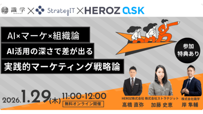 ストラテジット、識学、HEROZの3社共催でAI×組織マネジメントをテーマにした実践解説ウェビナーを開催