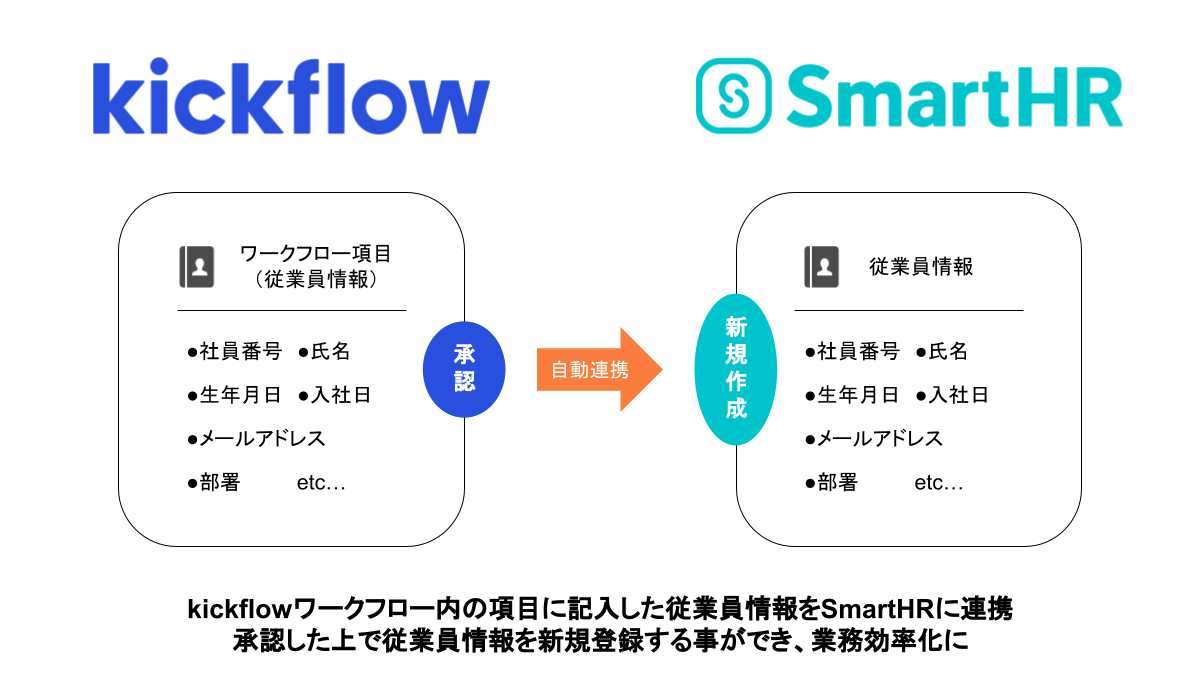 ・kickflowワークフロー内の項目に記入した従業員情報をSmartHRに連携する事が可能