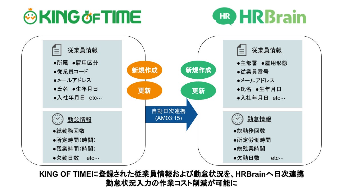 従業員情報と勤怠状況をAPI連携する「KING OF TIME to HRBrain」をリリース